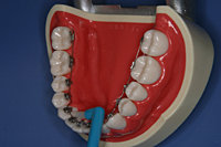 プラークは歯の色と同系色の為、 見分けがつきにくいです。時々、歯垢染め出し液を使って歯磨きができているか確認する事をおすすめします。 デンタルフロスも使用できます。使い方はお気軽に歯科衛生士に御相談下さい。